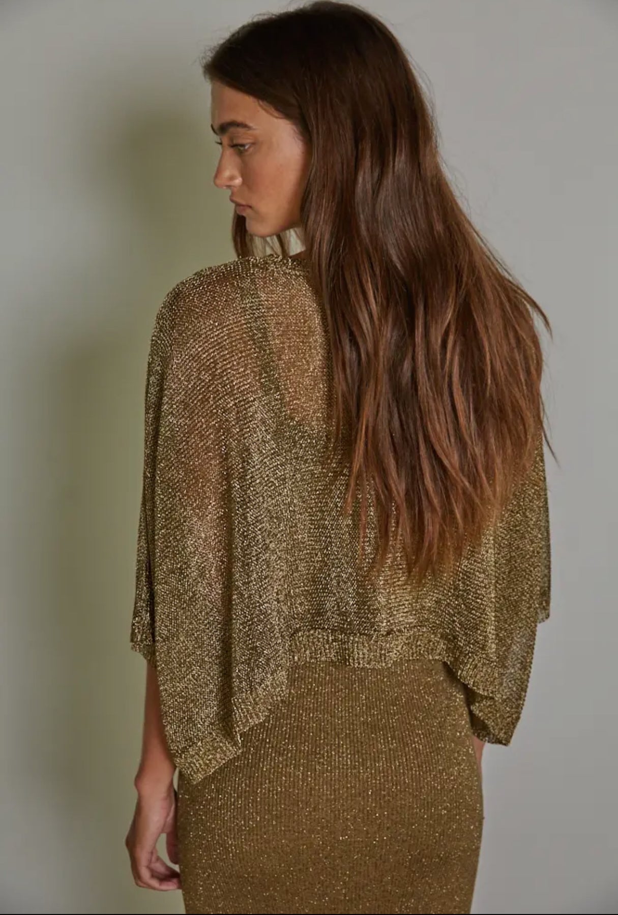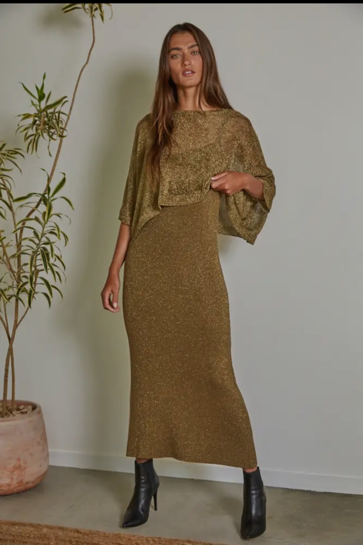 Knit Lurex Ribbed Sweater Binding Strap Round Neck Midi Dress. Sold as set with Lurex crop sweater,