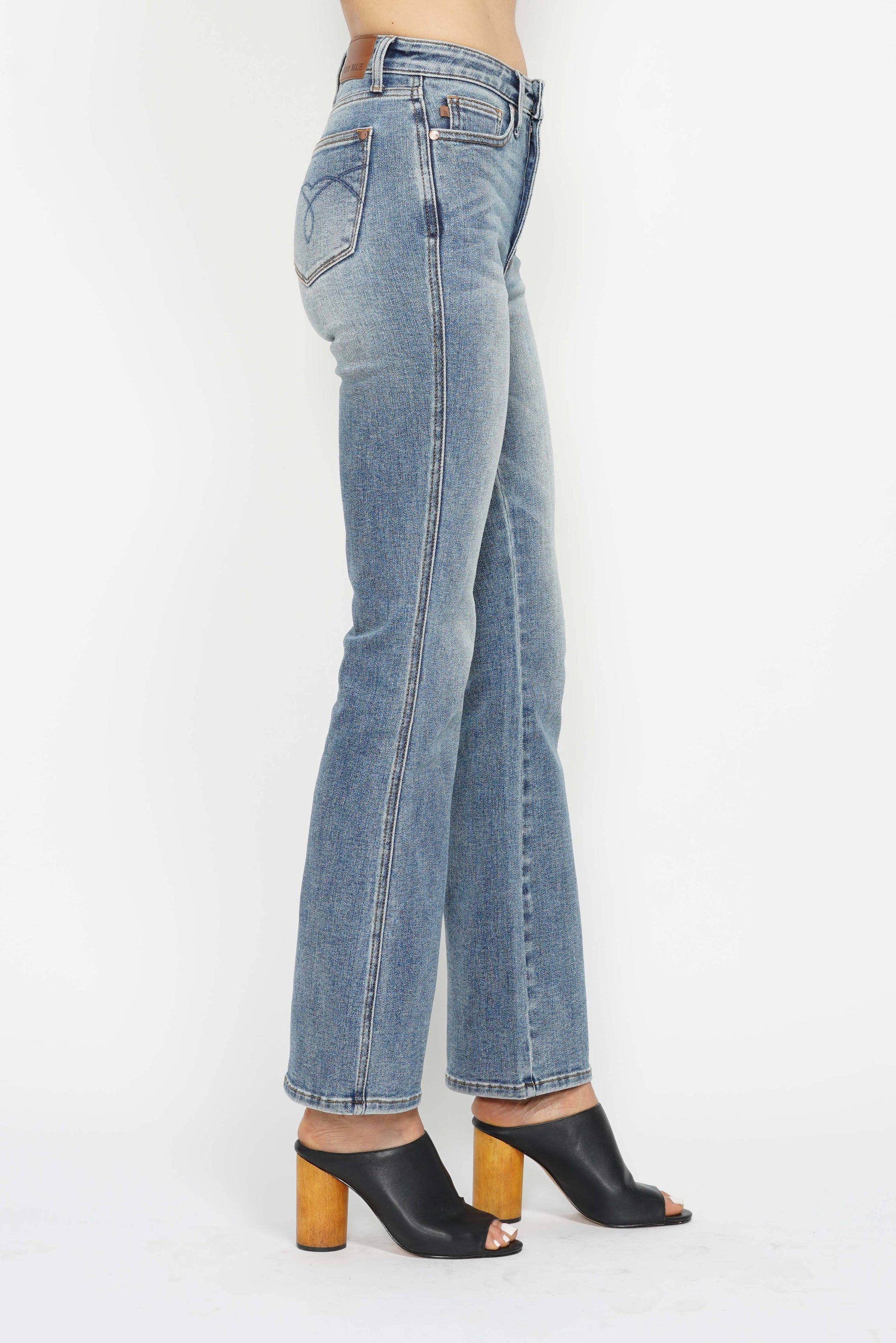 The Tummy Control High Waisted Bootcut from Judy Blue Jeans is a contemporary spin on classic denim. This pair is designed to offer a flattering silhouette, with tummy control features and a high waist for added comfort. The bootcut style adds a modern twist, making it a versatile addition to any wardrobe. Enjoy the perfect blend of timeless appeal and modern design with these jeans.