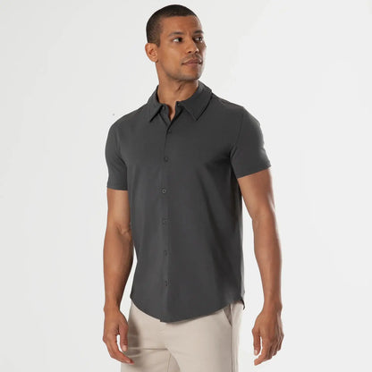 An ultra-soft, casual short-sleeve button up cut from a multi-stretch cotton blend. Inspired by a classic silhouette, reimagined with movement in mind.